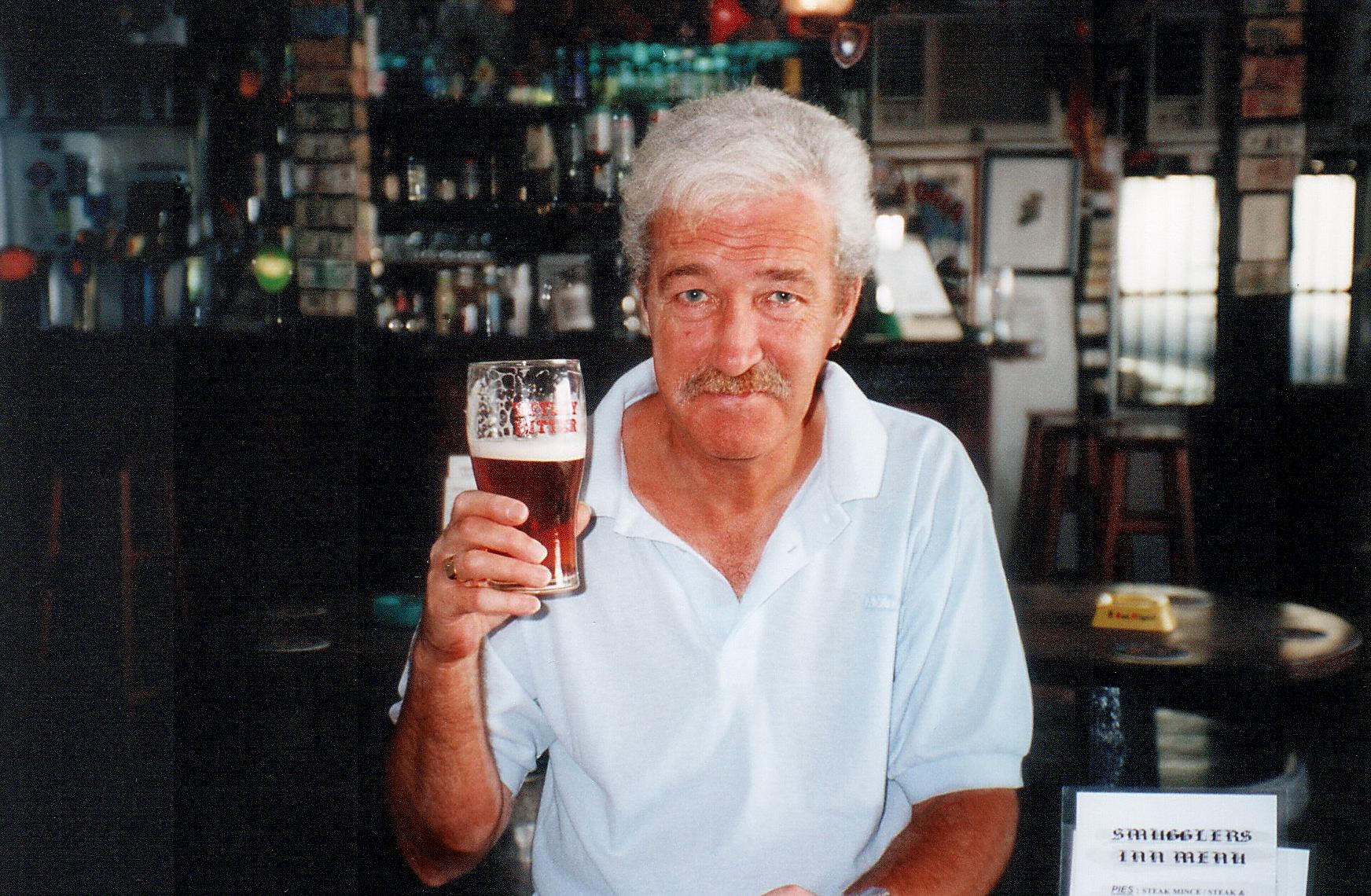 Enjoying a pint of John Smiths at a pub on Stanley, Hong Kong
